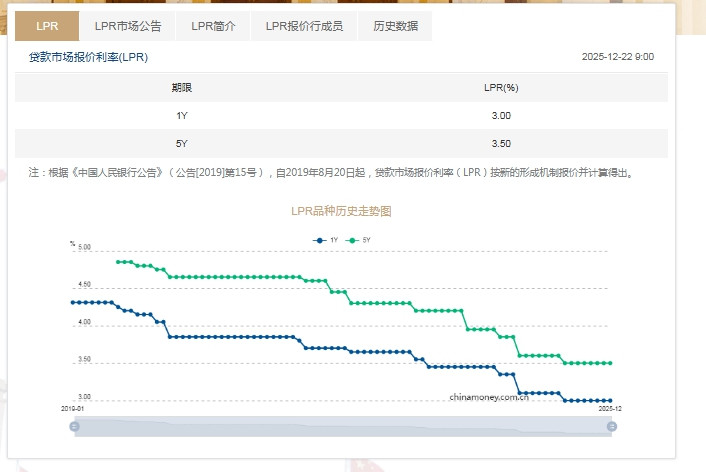 中新经纬12月22日电22日,中国人民银行授权全国银行间同业拆借中心公布,2025年12月22日贷款市场报价利率(LPR)为:1年期LPR为3.0%邦乾配倍,5年期以上LPR为3.5%。以上LPR在下一次发布LPR之前有效。